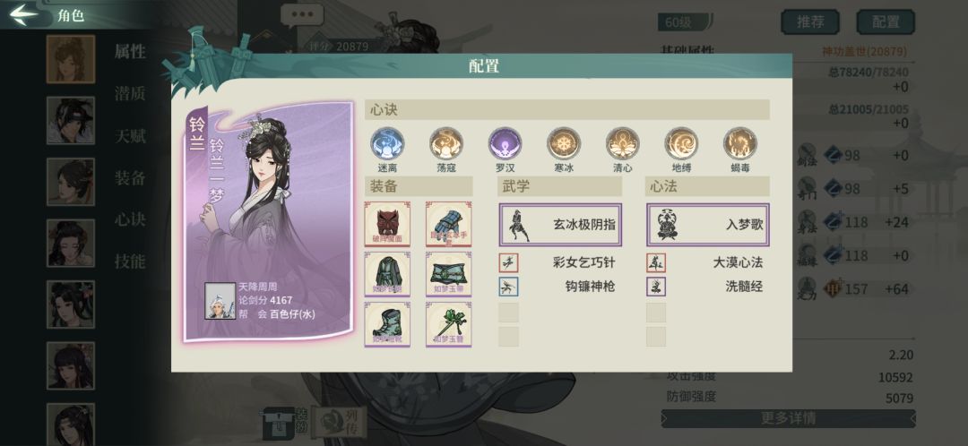 先说bp思路:优先搬妙真檀道济,妙真是因为打不到,老谭是因为砍不动。如果对面搬老谭或妙真,次搬考虑李白玉真。如果对面也是这个 bp思路就考虑对面是内战或者铁石,可以搬一手唐婉,优先拿纳兰王维李佩芷。如果搬位富裕可以考虑搬一手诸葛羽,刀魔不怕藏渊位,剑师姐除外,如果碰到高配铃兰剑师姐(注意是高配的,如果对面不是顶配一样乱杀),输就完了,概率极低。 废话不多说,先上配置图。其他的下面慢慢聊。这里只是给