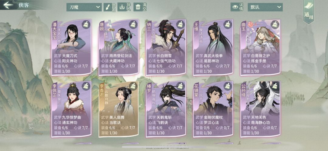 最近看到Tap和贴吧很多新人问副本怎么过,换哪个三十选一,还有论剑配置的,大佬们的刀魔作业很多,但是很多侠客都是高配版,虽然羡慕,但对无资源新人要求太高,我当时抄作业都不知道该咋抄,侠客都是0资质,为了转门派又不想过于投入刀魔的狭隘侠客群,只能舍小取大的做配置。 刚好睡不着,特此出个上绝贴,看看自己能否混个银元宝奖励。 2.0之后的装备获取渠道已经很简化了,两个赛季祈福出的侠客和武学也是适配刀魔的