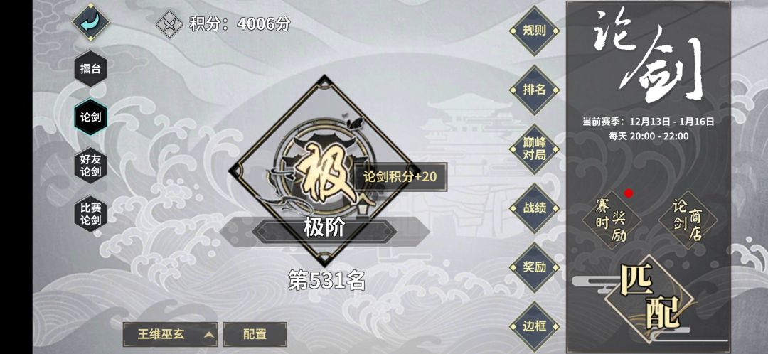 如今刀魔环境还算可以,但跪求不要去打高分段的论剑(甲亢上分没啥意思😂)所以我还是老老实实当条咸鱼趴,相比于上赛季,这赛季的胜率比上赛季高,仅用了94把就从玄到极,但甲亢现象还是不可避免的,评论有我的侠客配置和总体思路
