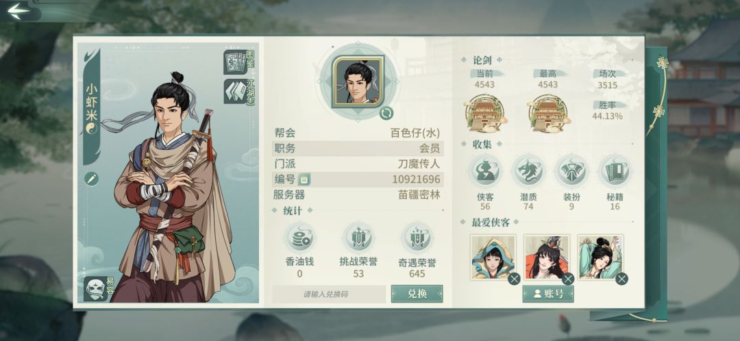 tip:侠客配置强度与当前版本、当前分段的论剑环境紧密相关(老区新区各自不同),也和自己的资源分配和bp思路有很大关系,别人手上好用的配置抄来不一定顺手,切勿一味照搬!希望大家对别人发的作业,多抱着一种增进游戏理解的态度去阅读。 ps:4000分以上的对局刀魔论剑体验较为一般,建议大家把4000分的赛季奖励定为最终目标,打上极阶以后健康游戏,每天拿完奖励下线,不要甲亢(连续不断地一直论剑)哦~ 【