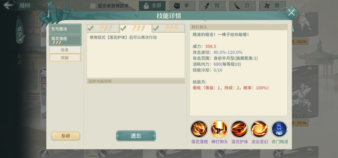 以下是个人想法,大部分经过实战验证并且有一定强度,在此分享给大家,仅供参考。 首先,莲花2突起用效果最好,因为有联动招式,可以有更快的速度以及更强力的控制。 其次,来分析一下莲花的定位! 一、控制 作为控制武学,莲花的控制效果与侠客的悟性息息相关。换句话说,侠客悟性越高,控制效果越强力。 除去属性影响,还要看侠客的天赋影响。比如香君: 陆游: 李白: 桃花: 由于他们的天赋影响,他们都是很好的控制