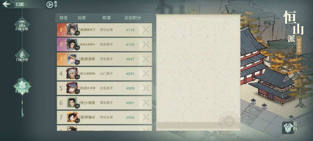 PVE门派排行(2025.3.25)