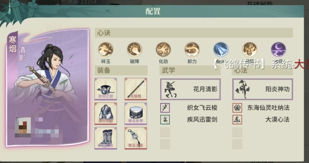 老登回归建的新号,今天刚满一周,等级59,超低配置过所有挑战本,下面说下思路 版本送的两个绝,一个选老叶,另一个可以选大小姐或者绝陆游,陆游论剑猛,大小姐pve好用 首先是养成,洗练资源全堆在主角身上,主要是腰带,饰品和武器,洗技能威力,暴击率,爆伤,臂力,基础攻击,无视防御,命中这些,出现大拇指就能收手,当然全满最好 其余侠客,甲桃花带清寒套,武器去误分解商店买个桃花琴之阴,心决加盾防御拉满