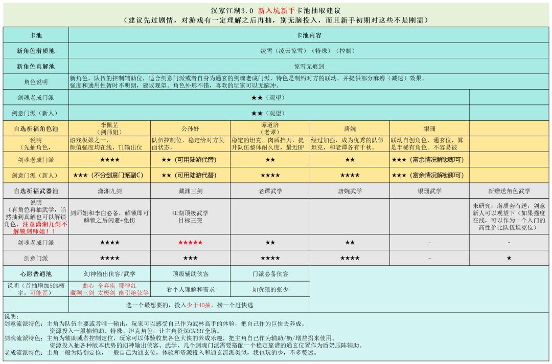3.0版本新入坑侠客卡池抽取建议