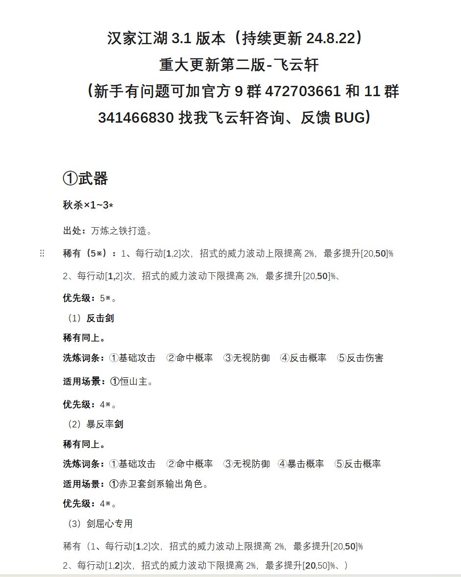 汉家江湖3.1版装备洗练总纲24.08.22(V2最终版)