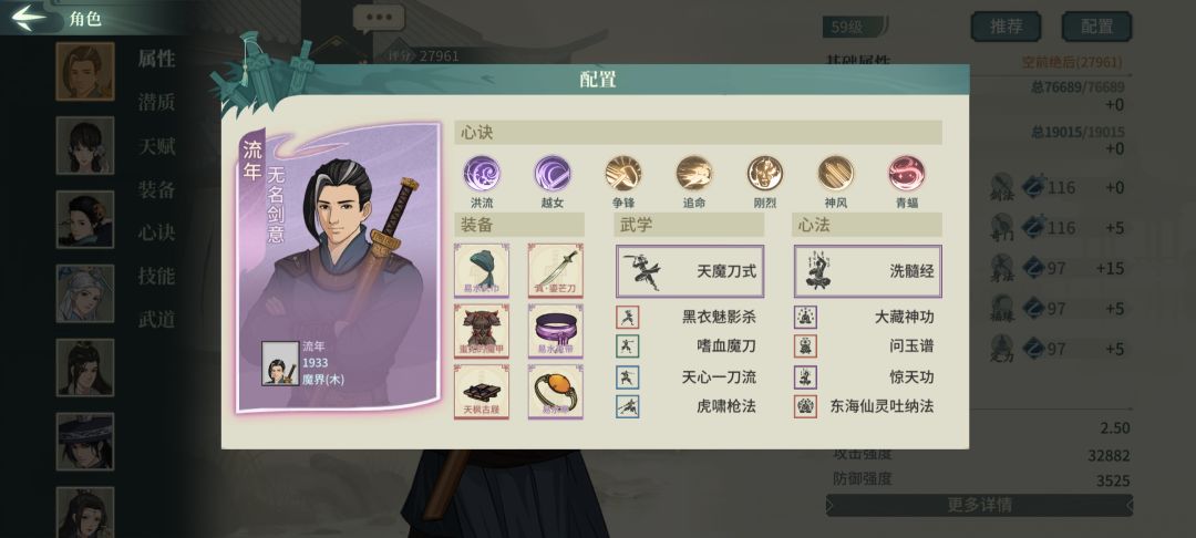 主角剑魂之气开局选浪客+快意江湖+未来,主堆定力 武学:必选黑衣有2.5的集气 心法:最好选素衣也可以选其他的,比如洗髓 前期跟着主线和支线走一直到15级之前能入队上阵的侠客有小白、刘和琅、陈虚元和大力士,这时候除了主角和大力士必须上阵其他两个随意搭配,武学心法和装备也随意一直过度到15级神偷入队可以换下其他两个其中一个,这时候少林寺和神秘地宫也开放了,真正肝的时候到了主要刷残页(扑朔迷离、天地无