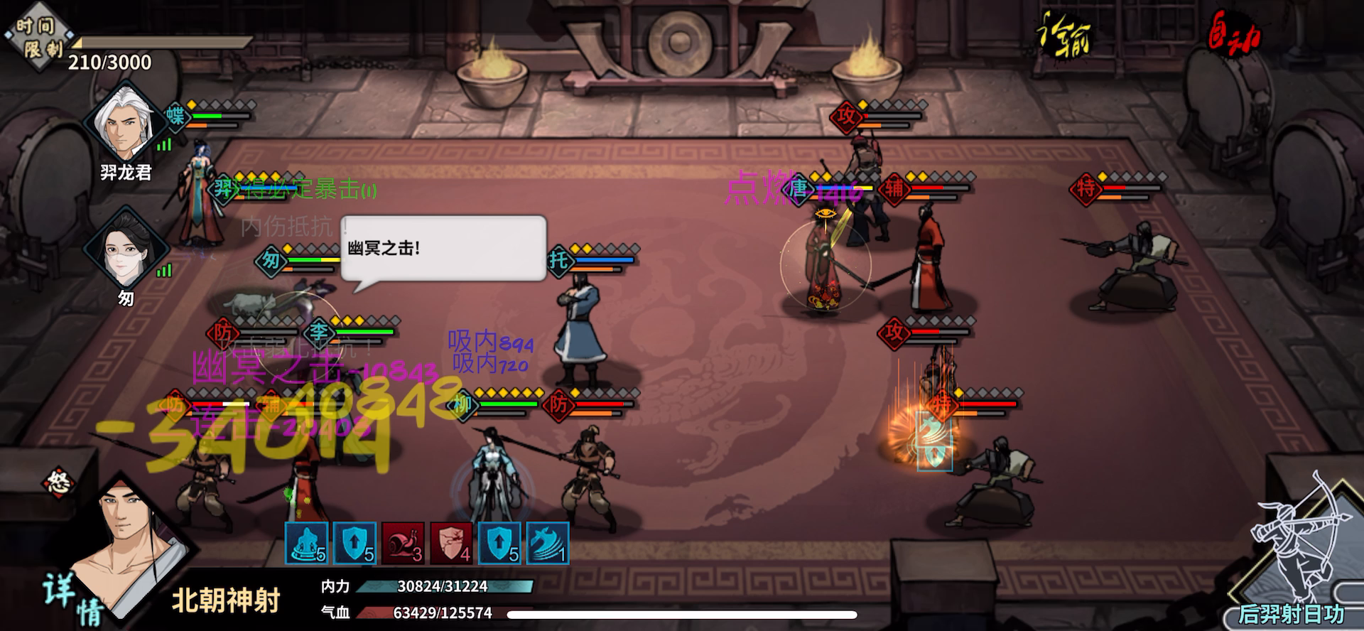 打了三把才过,中途还开了手动,比前两夜难度稍大,主要是容易被控死,所以一定要带反震和召唤之灵那个技能,天赋尽量选肉一点的天赋和闪避,另外今天没刷到每回合回血的技能,所以老叶扛不住,非得磕药,不然应该可以全自动过,前面两夜的打法差不多,比这个容易,开局天赋尽量选魅影,开局技能毒爆