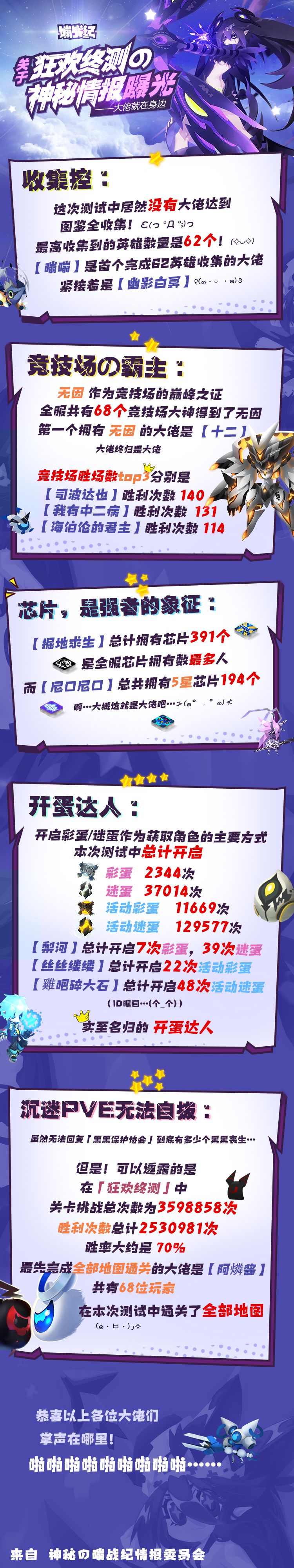 无所不知的乐乐酱来啦ww “狂欢终测“结束有一段时间了,也到了乐乐酱和大家算总账的日子了! 在此次测试中,谁是最强大佬呢! 让我们用数据说话ˋ( ° ▽、° )