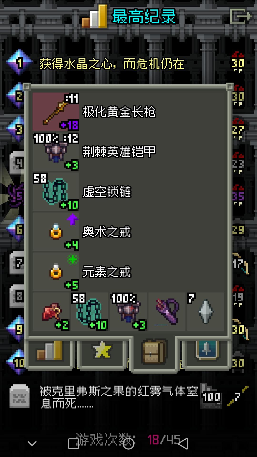 前五层给了一把腐化单手剑和寒霜长鞭,宝箱出了个加1的武力戒指,幽灵给的加二的甲,还有玫瑰和法典,然后第四层给了个酸蚀法杖