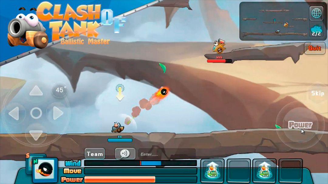 坦克宝贝是一个休闲的回合制弹道类游戏。控制你的坦克,合理的使用道具,与盟友一起击败其他玩家取得战斗胜利。