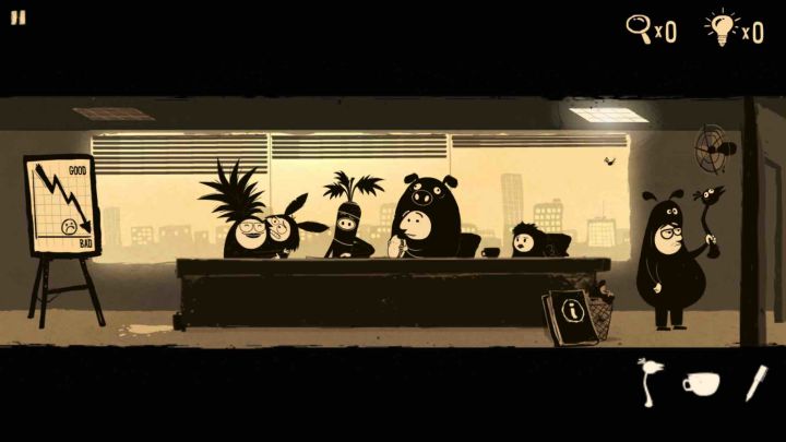先说明一下,游戏玩法是点击式的,所以都是点点点,不需要自己选择使用道具,所以攻略大部分都是直接标出能操作的地方和顺序,剧情就自己感受了哈~对你有用的话,可以给个小赞哦嘻嘻第一章拿扫把去打那只毛公仔,然后掉下一个锤子,捡起然后去换了维修工的锤子,锤了那个防火系统,在boss出来之前,躲进去打印机的后面。等boss在吹风的时候,偷偷溜走点了一下安全出口之后点进电梯,发觉电梯坏了进到下一