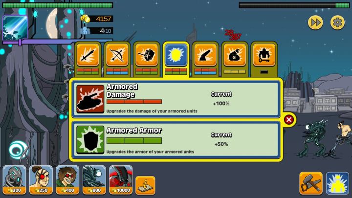 打地狱模式挺简单的,只要把远程兵全部屯在基地里面,再用一两个近战扛伤,让远程兵同时攻击,跨时代也能随便打,拖到未来时代,用一两个战争机器就直接平了建议开局点金币和远程兵的射程其次就是制造防御不过要注意,不要点的太多了,以免没有钱来抵御对面的攻击
