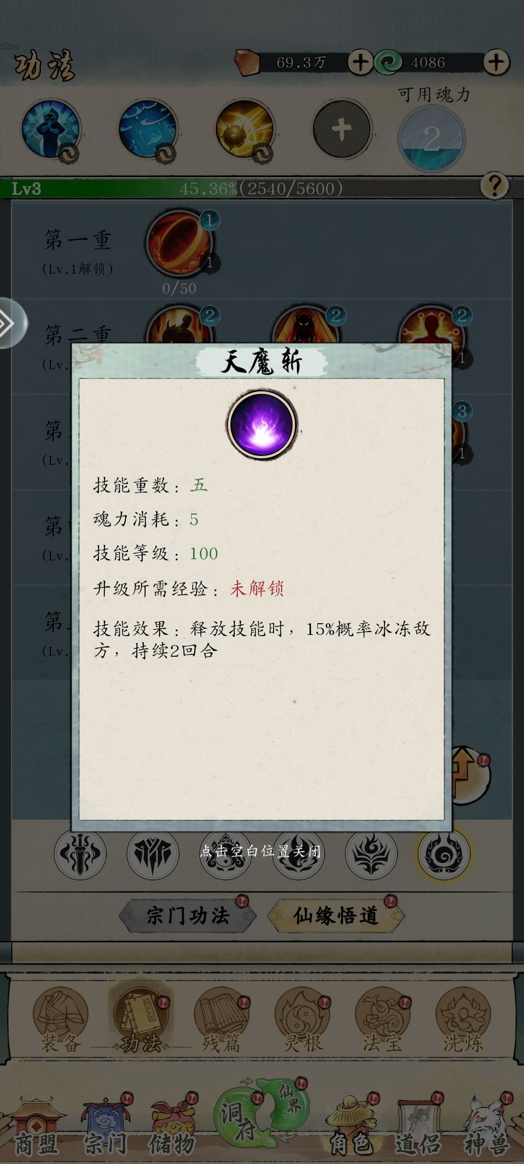 仙缘悟道是飞升后解锁非常强大的技能。 有着各种效果。 加速度削灵封技连击加盾控制。 而且仙缘悟道是在旧的战力体系之外叠加的新效果,不占用原资源的同时还能与其他效果叠加达到1+1>2的效应。 仙缘悟道有4个格子,可在各种效果中自由组合选择。 但同时,仙缘悟道的升级难度难到令人发指的地步。不断做仙界日常获取仙缘,经验也会不断增加,解锁新的仙缘技能。但是,仙缘的升级是在你解锁的所有仙缘技能中随机升级一个