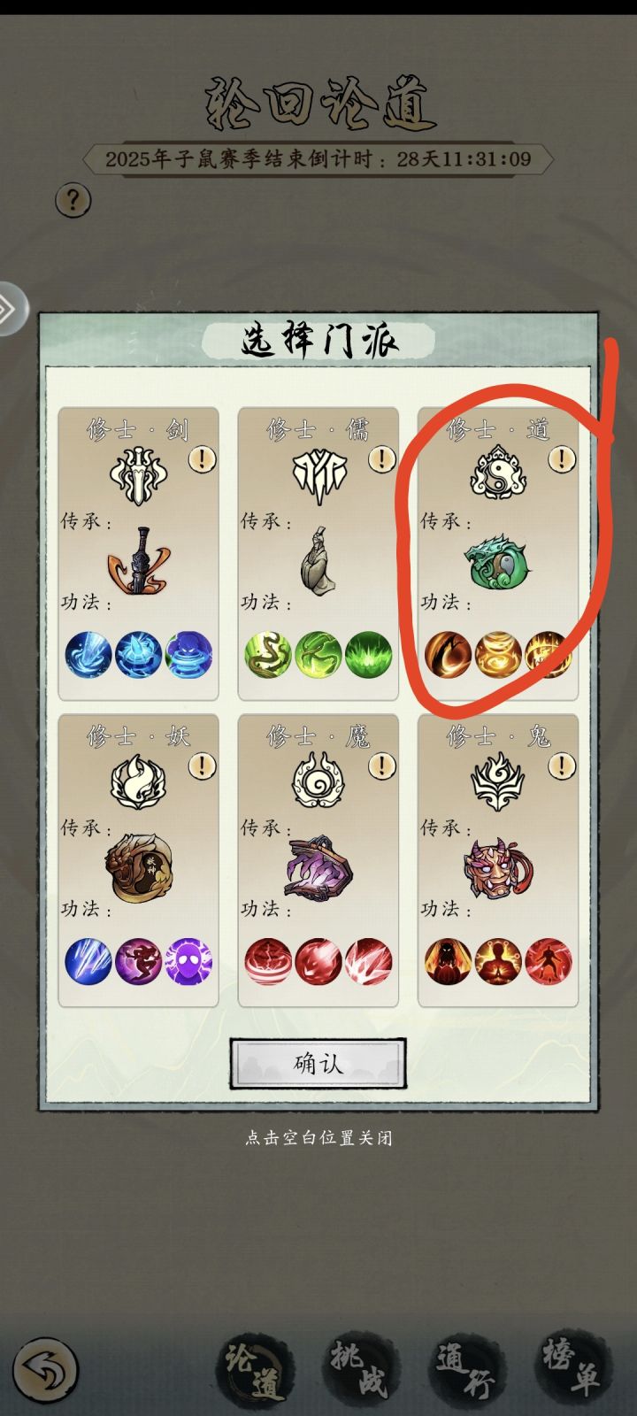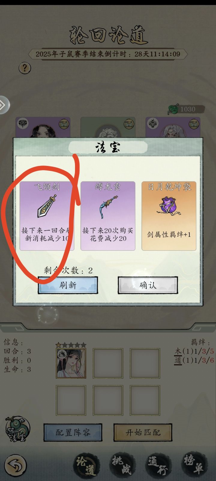 开局建议是选道主,之后法宝给道羁绊加一的话还能平白多出护盾。阵容的组成建议看第四张图,分别是玄武,道主,尚知岁(他的天赋是开局进行一次攻击,免费白嫖),觅儿,珠儿,青鸟,因为强度是固定的,所以D牌的时候以星级为第一优先级,一、开局开局是建议先死两次,存点金币为后续D牌提供经济支持,500轮回币是最高利息,当然,如果你血量只有一滴的话,那就是直接D干,二、法宝选择开局死两次后会给你法宝的选