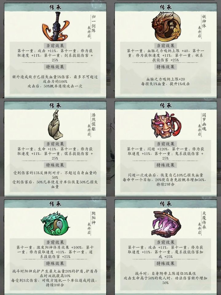 只代表自己的见解,道友们有什么问题也可以留言讨论一丶门派选择建议选择归一剑阵或者阴阳神,氪佬橙道侣开局可以选天魔传承。需要注意的是传承离开门派后无法生效,更换传承需要预留好真传弟子所需的门派贡献,一星3200,二星5100,三星7100。二丶红颜选择绝品红颜(橙色) 叶秋霜天赋加生命,绝学加伤害,第一个三生石首选 觅儿天赋加物防,绝学全体复活一次,次选 诸珠儿天赋加仙抗,绝学免控