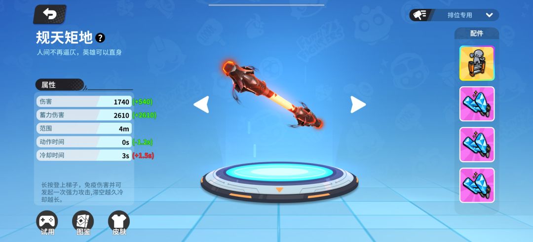 高跷:拿2把梯子,点击蓄力攻击可站立走路躲伤害也可以踢附近的武器道具!跟登高望远一样蓄力越久冷却越久!