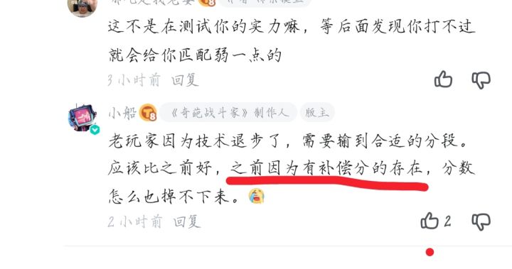 《分数怎么也掉不下来》,匹配改了之后,我现在积分保持不变,怎么个事啊😅现在输赢输赢一直都是那个分,没变过😅补偿分说是。《老玩家技术退步了》《补偿分》😅😅咋滴,老玩家不配赢咯,用新的匹配机制恶心人。补偿哪了我就问???