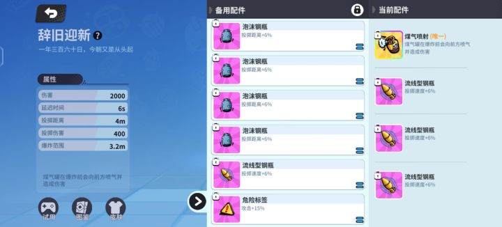 炸药桶是15煤气罐只有6,煤气罐的投掷距离也太短了吧?不能加强到8或10吗?搞得没啥人带这个配件。