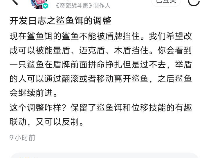 经过上周的金猪限斗测试(鱼竿调整为15 ,四叶草调整为5),大家对这样的调整是否满意?是否可以缩小败方与胜方的差距?是否可以缩小强势英雄和弱势英雄间的差距?同时会调整鲨鱼配件,平衡调整意见征集https://www.taptap.cn/moment/762606910028385539