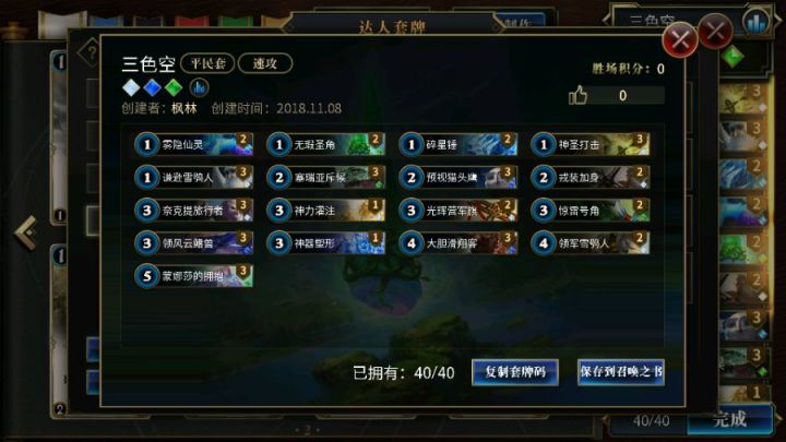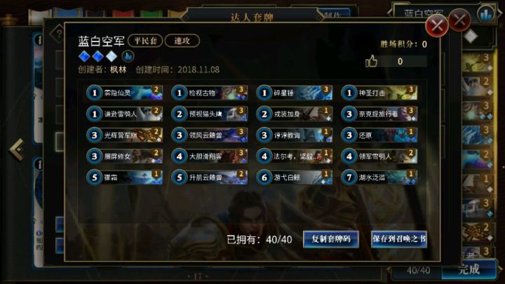打了一晚上全是深绿,毫无技术含量,很讨厌玩深绿这种无脑下怪的颜色,本着打不过就加入结果两边都是深绿拼手气,畸形版本,等黑色巫后版本出山薄纱深绿顺便发个深绿内战版本的,帷幕+大小金甲恶心其他颜色,后期大怪内战对拼套牌颜色:绿绿白雷霆扫荡x2 GG (5)诱捕诡雷x2 G (1)金甲可敦x3 GG (3)风语冥想师x1 G (4)蒙娜莎的拥抱x1 G (5)绿茵谷结界护卫x2 GG (