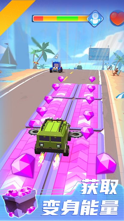 汽车碰撞的现场,电光火石之间,汽车人伴着背景的强音起身迈步,车厢变胸膛,车门、车轮舒展成四肢,正式开启了机器人之间的战斗。每一次击败对手,都将为你积攒变身所需的能量。你需要做的是在跨越死亡之海,穿越重峦叠嶂的山川之际享受飙车快感,在钢与铁之间的一次一次厮杀战斗时,点燃你战斗热情。