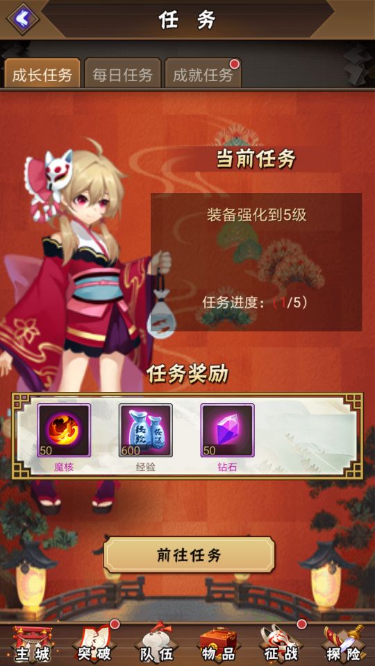任务系统是每一个游戏的重要组成部分。玩家在游戏过程中完成主角成长的同时,还会触发相应的任务,获得不同奖励。当任务完成可领取时,任务图标上会出现小红点作为提示。1、成长任务:魔师每一个的成长阶段,都有不同的任务,对应不同的奖励。当前任务完成领取后,便不会再重复出现。后面会有更高等级的成长任务出现,以此类推。2、每日任务:每天都会出现的常规任务,当天完成的任务奖励,只限当天领取。第二天会自动刷新,