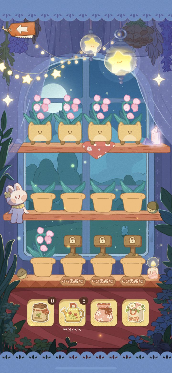整体感受还是很不错的,做了一些游戏说明,希望莉莉在公测前继续加油花园玩法: 不用花朵可以换不同的设计稿,设计稿无敌美丽,猛猛种花; 花盆也有可爱的外观可以兑换选择,真的忍不住花钻石和金币,本人直接斥巨资解锁了9个花盆冒险玩法: 三个相同一组选中对对碰,选中有限,小棋子有图层堆叠,前几关非常简单,以至于衬的第二大关了会有点难,每次关卡都会有三次复活机会,这个机会
