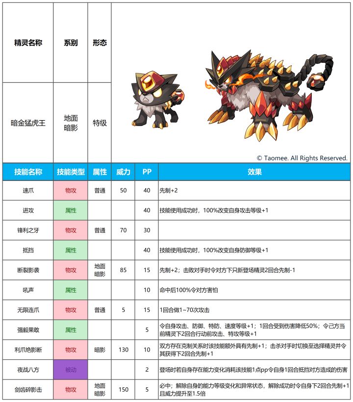 注:精灵的实际内容请以更新后游戏内为准!· 暗金猛虎王· 埃弗里克· 猛虎王特训