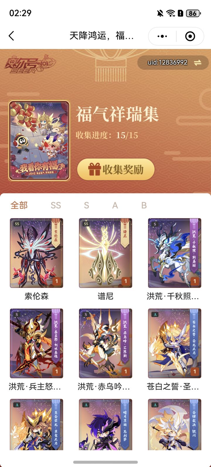 马上在TapTap预约《赛尔号》春节版本,版本上线后可获得超值礼包!赛尔新年送福啦!两大全新活动今日正式开启!1、宇宙集福卡·福运启新章我们捕获的“福气能量”,已凝结为福卡散落宇宙。赛尔们通过收集福卡、赠送交换,可以获得不同种类的福卡,每一张福卡对应1种道具,集的越多,得的越多!集齐5张不同的福卡赛尔即可在2月16日除夕当天晚20点瓜分高达688万钻石,解锁你的终极福运!一定要保持在线哦