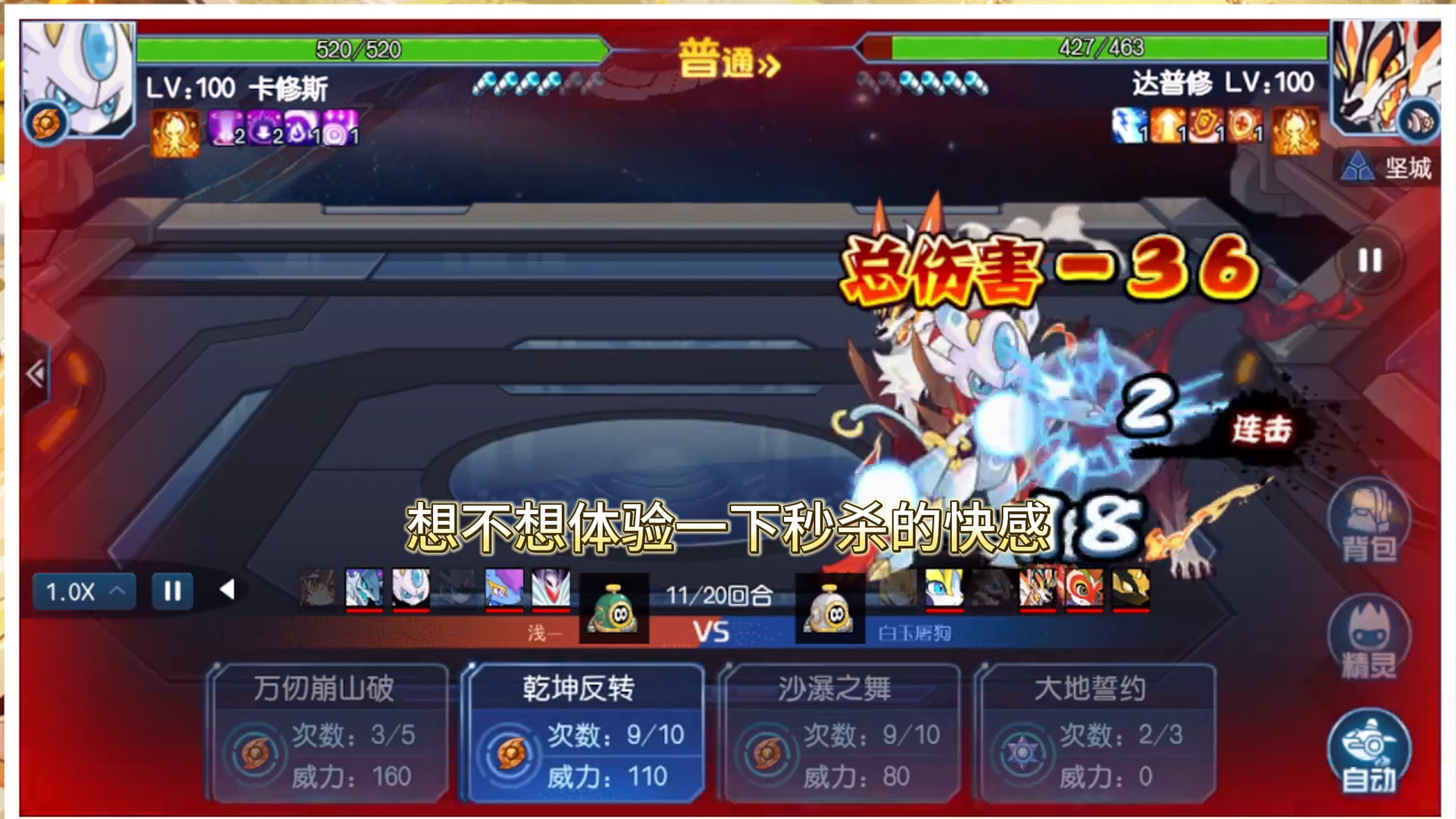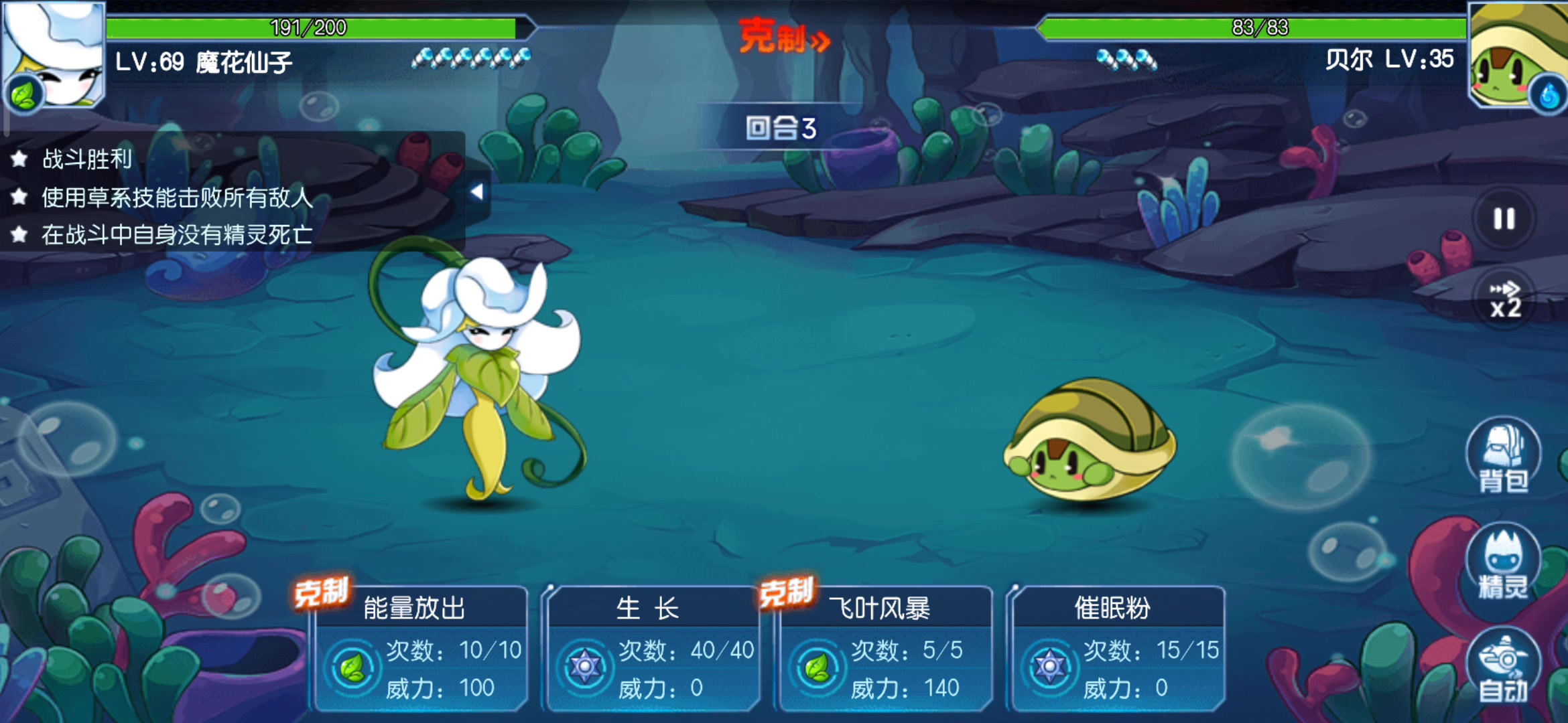两次才过,因为第一次用缪斯没想到被最后的boss秒杀了,第二次突发奇想加多一只索林。没想到只需要两只精灵,缪斯加索林,水超是准备反最后一只的,保障一下,但是过了一次发现可有可无。这次不得不夸一下,经验1666太给力了。 话不多说,可能很多小伙伴好奇怎么打法,接下来进入正题,如何一首歌的时间打吒克斯。 要点来咯。第二个boss一定要边打边磨血,耗到先制15还要能保证击杀。第三个boss到2000