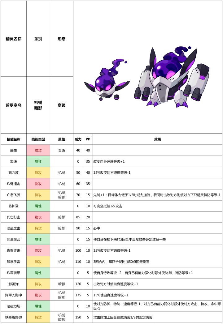 普罗塞乌——赛尔号手游20201021版本精灵图鉴