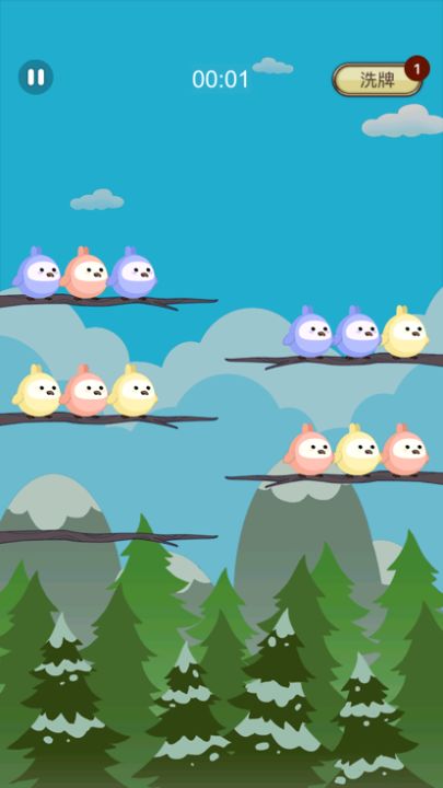 游戏目标:将完全相同的小鸟移动到同一个树枝上,当所有可爱小鸟全部分类完毕,即可成功闯关,成为排序大师!