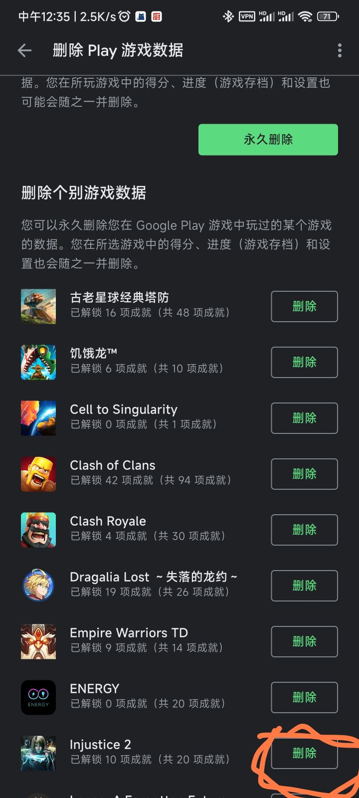 请问谷歌怎么删除存档,重新开档呢?我谷歌游戏这里删除后,登录游戏,还是之前的存档。