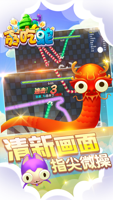 2、 让敌人的蛇头碰触你的身体,敌人就会死亡,并差生大量光点,吃掉他们,做最长的贪吃蛇!