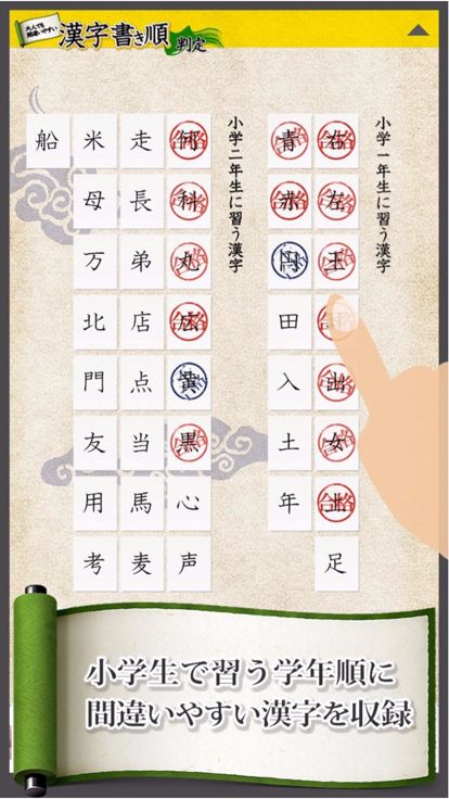 「漢字書き順判定」は、小学生の時に習ったはずの漢字の書き順を再確認するアプリです。