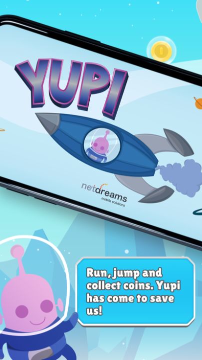 Yupi is a free endless runner, casual, indie and adventure game for iPhone and iPad. In this game, you help Yupi, an adorable alien creature, to collect gold coins to help humans.