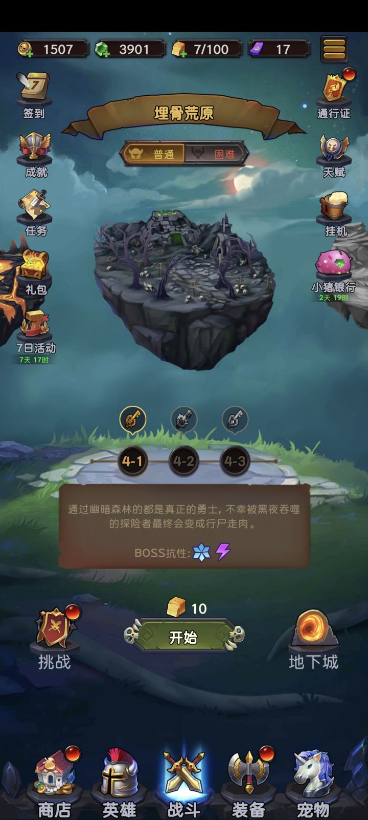 画面喜欢,第一关幽暗森林1一3我都没过,体力没了,英雄技能同一个不容易升到满级无力对付小怪被小怪追得屁滚尿流好不容易捱过去遇到大的来了,得,攻击无力等死吧。