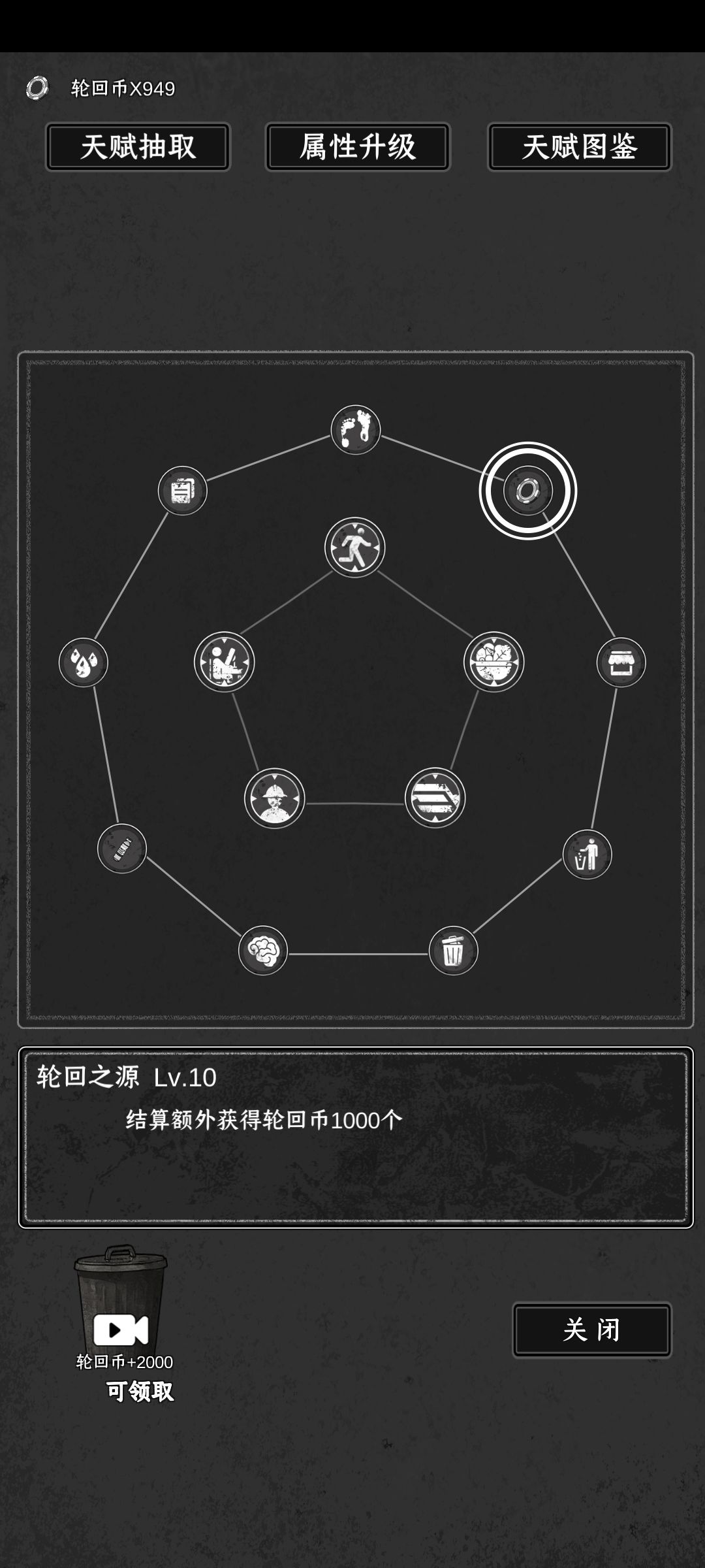 五星真不一定是好天赋,更喜欢带这三个 白羊座:每天行动力额外恢复10点,天赋上限只是上限,每天恢复根本满不了,但是配上白羊座和持续充沛,那行动力简直了,要知道打工有限制,但翻译是没有的啊!也就是,行动力就是钱啊! 烟草局:开局自带5个华子,配上属性宝藏之眼,每次都会翻出华子,相当于白送手镯手表等名贵物品,刀龙是绝对的好人啊! 轮回者:保留这一局最高属性的30%到下一局。 没有轮回者的打工不是工,学