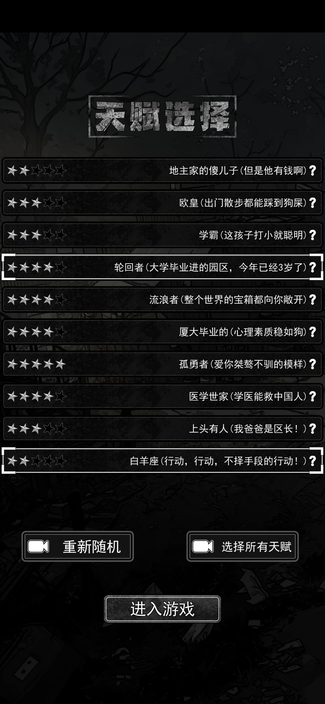 要通关的话死都不要买黑市的东西小卖部只要有吃的就买后面想买都买不到还有不要去收废品的大爷打工没钱了就去手机上推荐富翁的傻儿子白羊座不要看哪个星高就选哪个雇佣兵要刷满不然后面很难打
