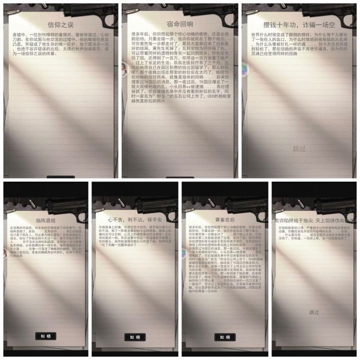 ★★★★★位面之子-单局游戏金手指次数+5亡语-单局结算获得的轮回币20%时间掌控者-每次来宝箱可以选择从新开一 次孤勇者-无视20%警戒值夜店王子-开局整洁+30调虎离山-每天随机两个地点降低警戒值降 低★★★★☆医学世家-开局获得医药箱厦大毕业的-精神降低-50%模范打工人-天气造成的负面效果减少50%月卡党-开局获得100砖石,每天获得30砖石流浪者-每天在随机地点有