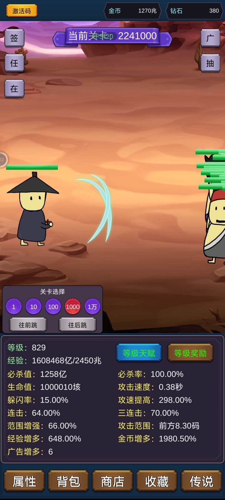 怎么说呢,这个游戏你把收藏买完其实就算通关了,剩下的就是把别的等级刷满前期上线在线多一点,升级和点技能,广告也可以看前期升快一点,大概两到三天就可以买完了,后面就是刷等级,广告也不用看,性价比低然后就是说不用追求攻速,大概0.6~7就差不多了,因为你再快还是只出了那么多人额,差不多了吧,OK,没了