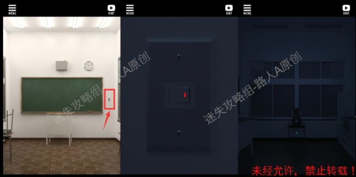 攻略组攻略优化更新,希望大家继续提意见给我们,攻略组会继续加油的!🌵第一章🌵1.点击黑板右边的开关,关灯,然后往右移,发现扭蛋机桌子下面有箭头▲。1.1、1.2、1.32.开灯,再返回扭蛋机,点击桌子下面,取得电池和硬币。2.1、2.23.点击黑板右下,取得黑板擦。3.14.点击储物柜上面的紧急出口标志,取得硬币。4.1、4.2、4.3>>✅迷失攻略组目前已经制作了大量的游戏图文攻略,