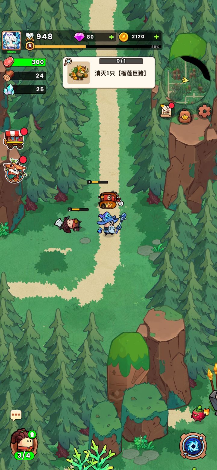 核心为解锁玩法+提供放置收益,副本产出装备用于守护像装备提供属性,而矿洞、金矿、伐木屋提供聊胜于无的材料,同时还有宠物捕捉、烹饪等制作玩法,都比较常规;
