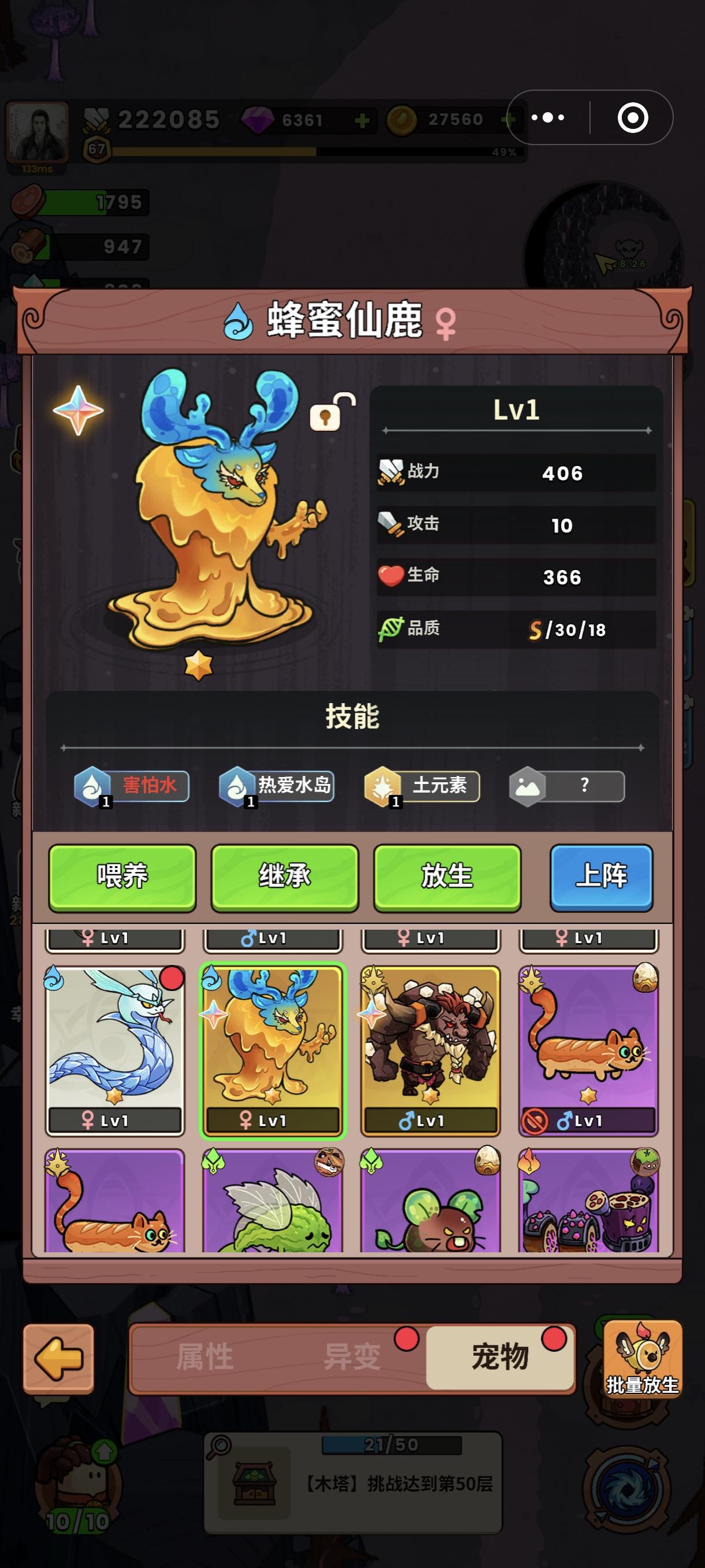1.宠物,分为土属性,雷属性,木属性,水属性,火属性。2.抓宠物的时候,用同属性的食材,成功率会加很多。 彩虹米团是必成功。一发入魂。3.宠物资质s级 资质上限是20-20 左边是攻击 右边是生命。 超过20 宠物会带星星。4.宠物升级,用同属性的食材 +1000经验。 495个升满级。5.宠物升星,需要相同宠物 相同星 升星。 2个一星升2星。 2个2星升3星。 资质会叠加。 资质影响升