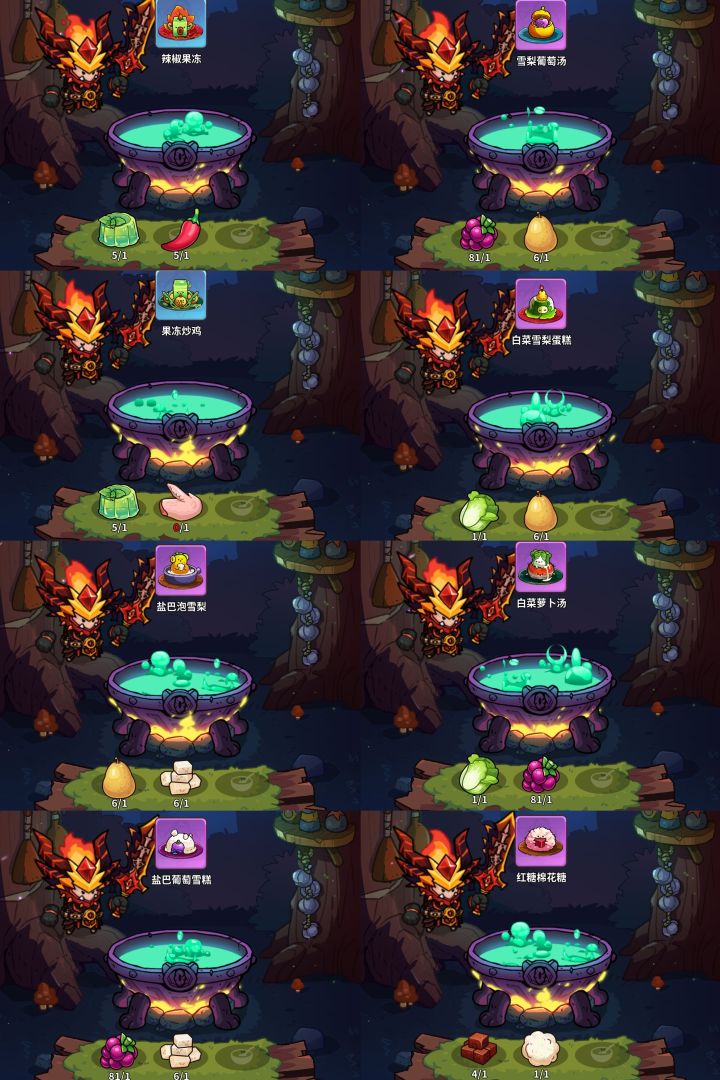 辣椒+鸡=辣椒腌鸡鸭肉+水稻=鸭肉粽子红豆+鸡蛋=红豆蒸鸡蛋鸭肉+洋葱=洋葱白切鸭鸭腿+南瓜=南瓜炖鸭洋葱+辣椒=辣椒泡洋葱水稻+红豆=红豆炒饭白菜+仙人掌=仙人掌炖白菜红糖+柠檬=红糖柠檬水#新游攻略先锋企划#攻略#游戏推荐#游戏安利#游戏讨论#游戏福利