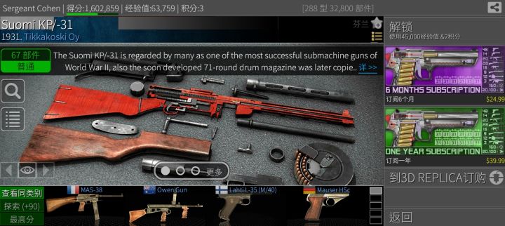 不知不觉已经买了175把枪械了(除了前苏联PSS微声手枪不算,那是临时赠品)还差最后90个枪械,正好符合这游戏图标的250+枪械(刚才查了一下,总共265个枪械,这游戏)接下来计划准备把这3把枪买了,分别是苏芬战争时期芬兰军队用的索米冲锋枪,我国国共内战时期和抗日战争时期国军军队和八路军军队(工农红军军队)用的瑞士KE7轻机枪,再加上一战时期沙俄军队用的温彻斯特1895杠杆步枪,全部买完坐等这游