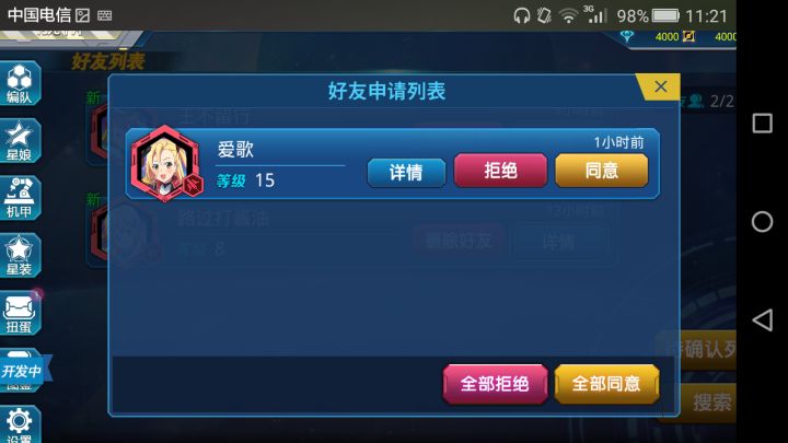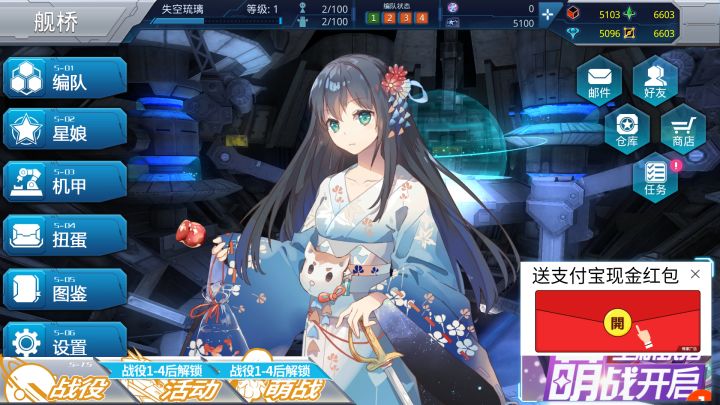 终于终于等到了!今天开放了下载!我兴奋的拿着激活码下载后点开了游戏然后我发现她卡住了!住了!了!没有错就在这个界面但是这不能阻挡我的脚步机智的我发现只要关掉游戏重新点开一次就好于是我继续开始了开荒的步伐♥带上了心爱的ID进入了星群号♥副舰长小姐姐已等候我多时了♥界面的画风大概是这样了 还算整洁战斗结算界面当然少不了神奇的抽抽抽环节简单的初步游戏体验后就来了提示我也随之