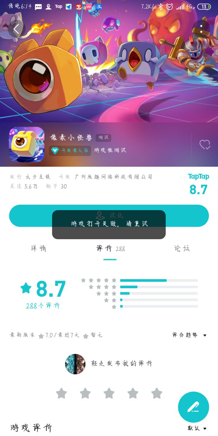亲爱的Taper们,《怪兽大乱斗》的代理权转移到云步互娱,同时更名为《像素小怪兽》。由于《像素小怪兽》暂时没有申请到版号,所以我们无法开启内购。希望在我们的运营下,《像素小怪兽》可以取得更好的成绩,获得更多Taper的喜爱!