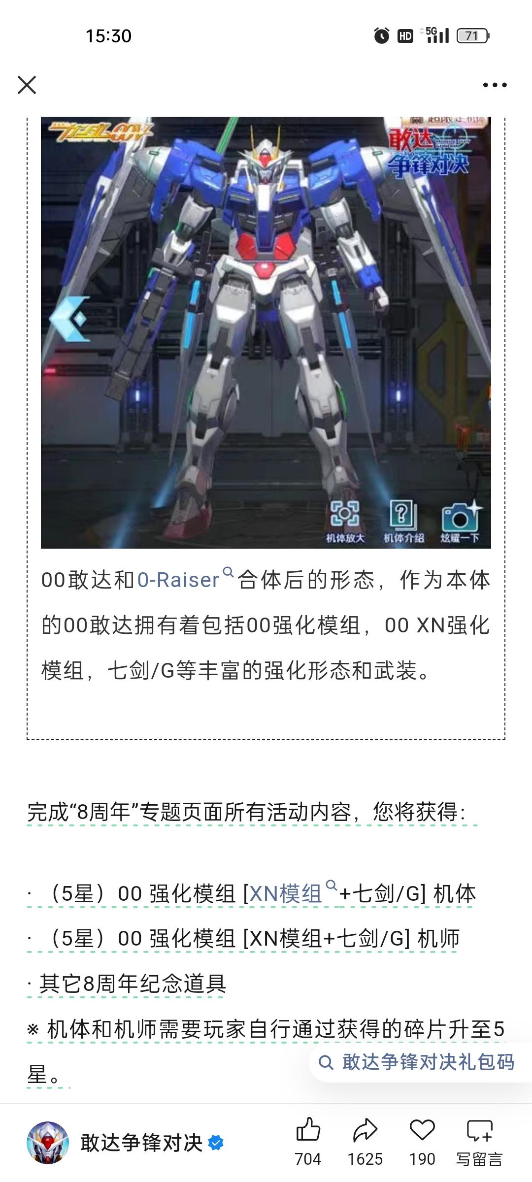 大家估计都看过通知了,最幽默升格神木,不如说是强化,七剑完了之后,还有个全装00七剑,听说下个版本超限还是全装备00,这游戏改名儿叫00的无敌战争算了目前自从凤凰出来之后就没有更新过了,属于是淡游状态