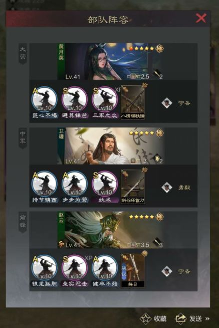 前言一: Y:瓒刀看脸!瓒刀不稳。 M:率土不存在“绝对稳定”的队伍,只能通过自己的思路利用战法+武器去搭配,让他变成一个“相对稳定”的队伍。 前言二: 在这,我先引出一个问题:“什么样的队伍算好队伍?” 我的理解: ①攻防兼备,防守够,输出够,稳定度够,即为“好队伍”。 ②防守溢出,输出不够,“肉队半肉队”。 ③全是进攻,没有防守,美其名曰“爆发队”,实为“碰瓷队”/“衣果奔队”。 前言三: 上